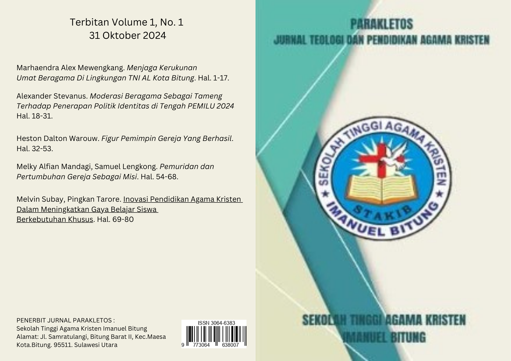 Pada terbitan Vol. 1, No.1 2024 Jurnal Parakletos memberikan tema: Teologi dan Kepemimpinan Gereja yang menyajikan pemikiran-pemikiran yang dapat mengkonstruktif teologi dan kepemimpinan yang lebih relevan.