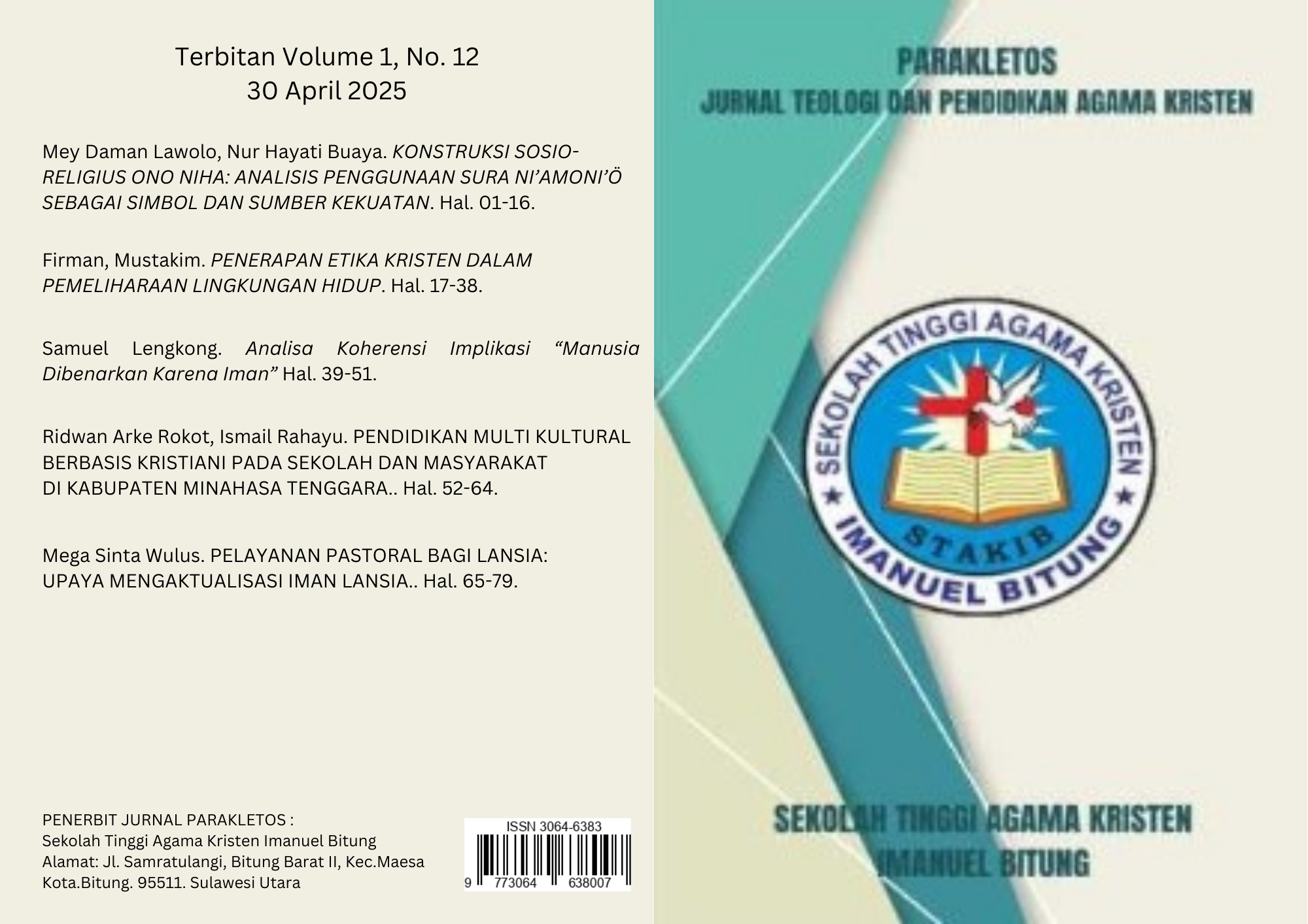 Pada terbitan Vol. 1, No.2 2025 Jurnal Parakletos memberikan tema: Teologi Menjadi Cahaya Bangsa yang majemuk dengan budaya dan falsafah.